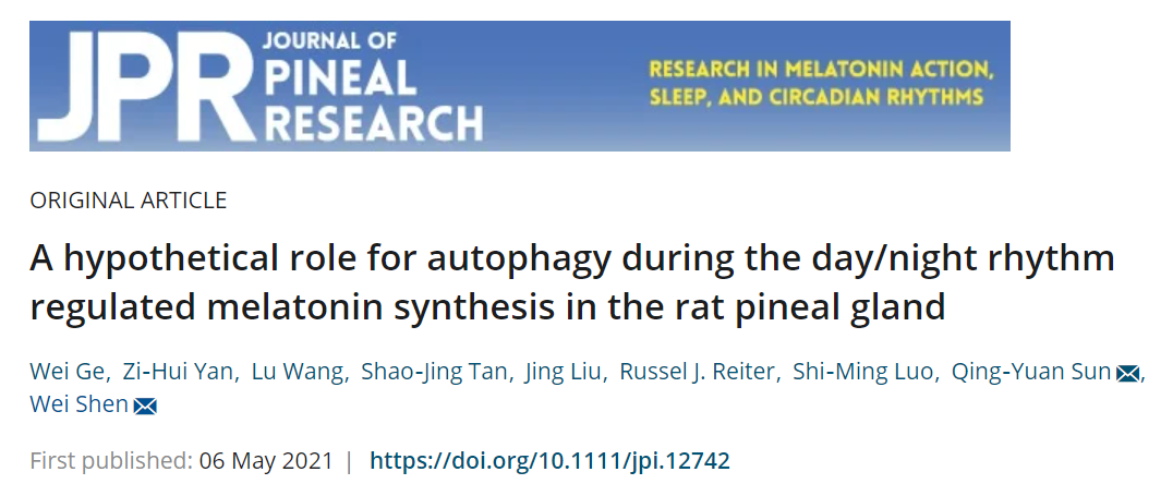 5月6日,国际著名期刊《Journal of Pineal Research》(一区,IF=14.528)在线发表了yzcca88登录官网沈伟教授课题组完成的题为“A hypothetical role for autophagy during the day/night rhythm regulated melatonin synthesis in the rat pineal gland”的研究论文,首次揭示了自噬调控褪黑素合成的潜在分子机制。