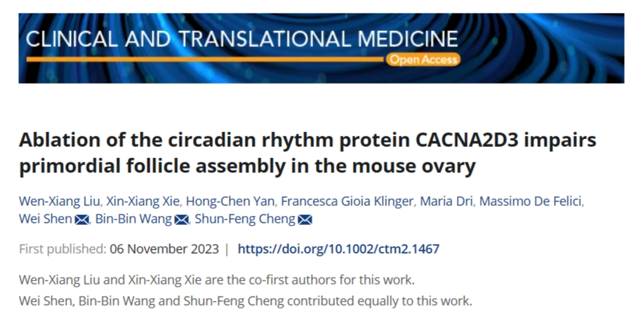近日,yzcca88登录官网沈伟教授团队程顺峰教授课题组在国际著名期刊 《Clinical and translational medicine》(IF=10.6)上发表题目为“Ablation of the circadian rhythm protein CACNA2D3 impairs primordial follicle assembly in the mouse ovary”的研究论文。该研究在单细胞尺度揭示了昼夜节律蛋白CACNA2D3在卵巢原始卵泡形成中的重要作用。