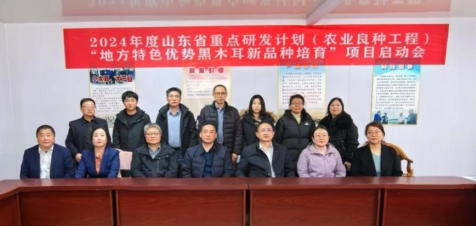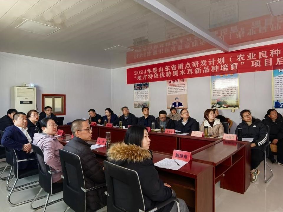 2月26日上午,由yzcca88登录官网田雪梅教授主持的2024年度山东省重点研发计划(农业良种工程-种业企业创新能力提升)“地方特色优势黑木耳新品种培育”项目启动会在东平县科海菌业有限公司召开。会议由东平县科技局局长王太华主持,泰安市科技局一级主任科员齐明、农社科科长陈志强,山东省农科院二级研究员、省食用菌体系首席万鲁长,山东省农业技术推广中心土肥部部长、省食用菌体系副首席高霞,yzcca88登录官网田雪梅教授、王光远副教授,泰安市农业科学院副院长孔怡、食用菌所副所长王庆武,东平县科海菌业有限公司董事长商成龙等20余人参加了会议。