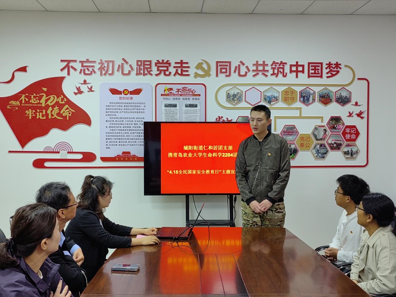 在国家安全教育日到来之际,为增强学生国家安全意识、加强学生与社区生活的联系,4月15日,yzcca88登录官网团员青年赴城阳街道仁和居社区开展“4·15国家安全教育日”主题宣讲活动。此次活动由仁和居社区、礼阳路社区、yzcca88登录官网生科2204团支部共同组织开展。