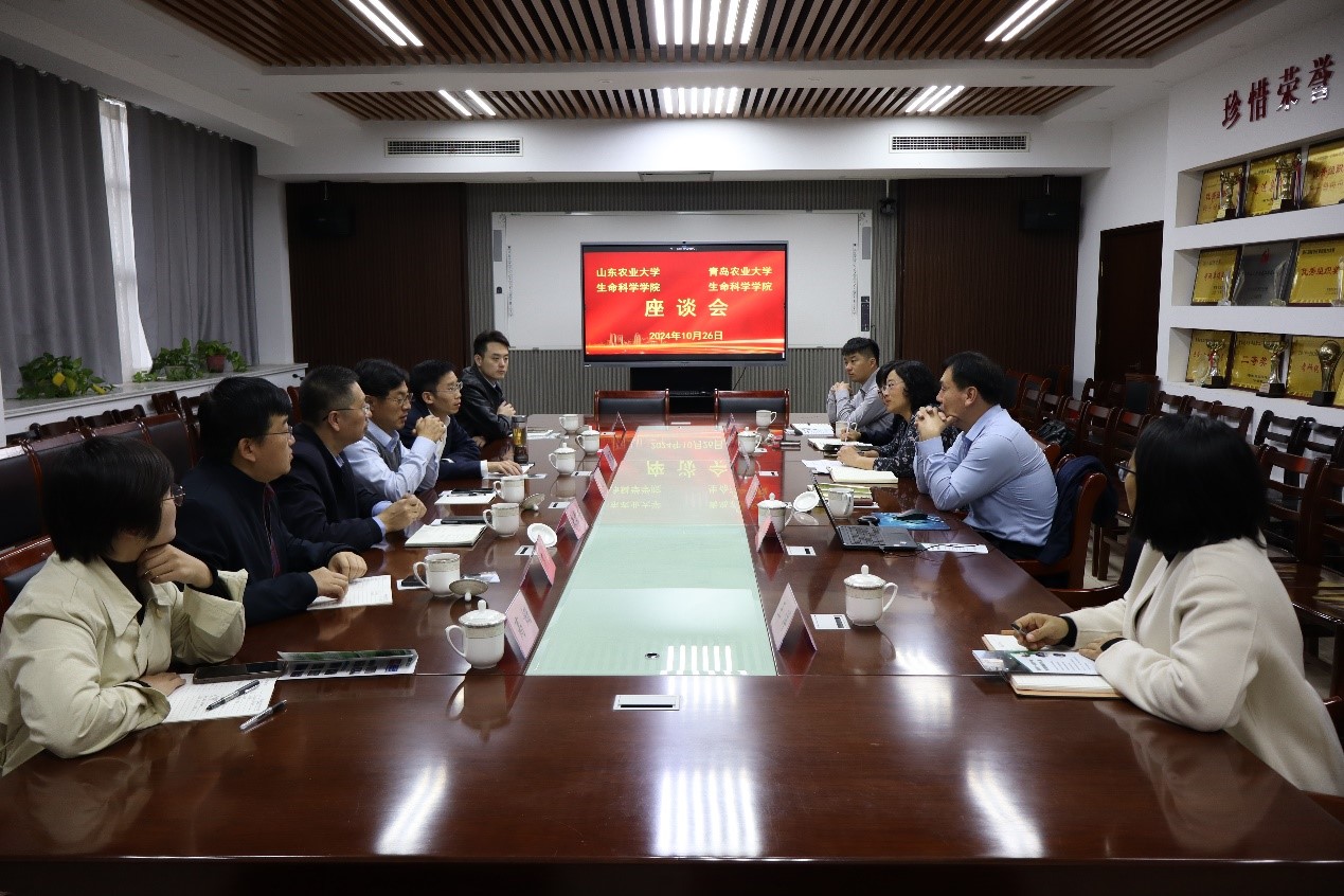 山东农业大学yzcca88登录官网副院长朱常香介绍了山东农业大学yzcca88登录官网人才培养、实验室平台、就业情况以及育人成果等情况。他表示,希望双方在学科发展、人才培养等方面加强交流,促进双方共同发展。会上,双方就人才队伍建设、创新育人成效、科研团队组建、科研平台建设等问题进行了深入的讨论。