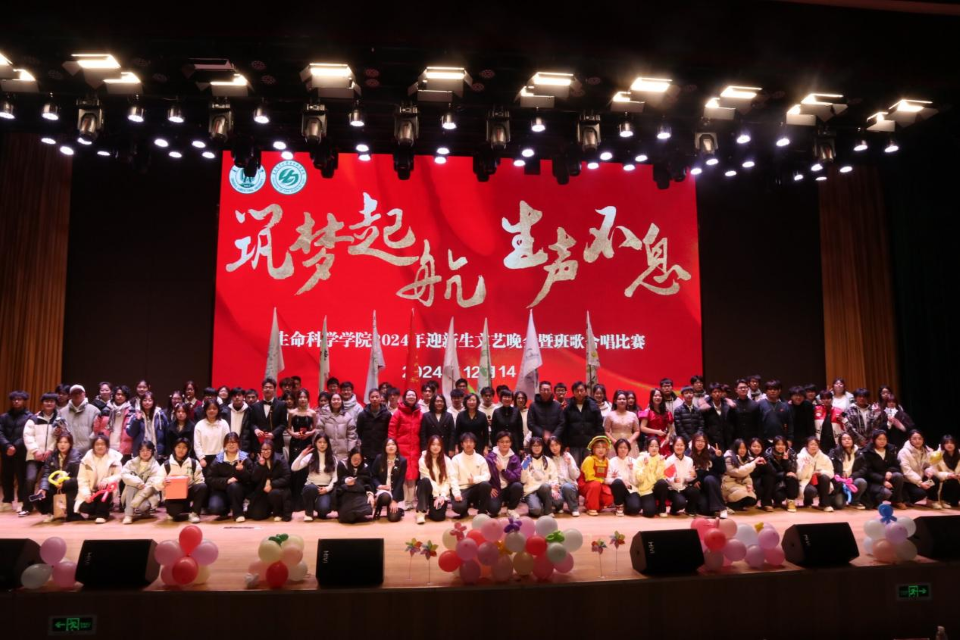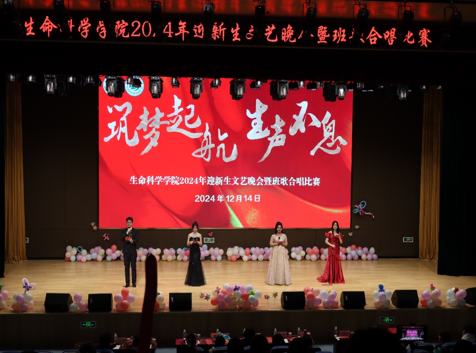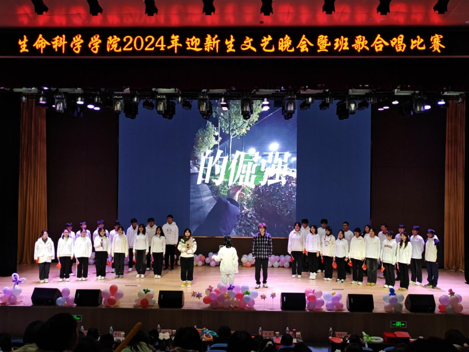 晚会分为“生命华章,乐韵飞扬”、“舞动青春,歌吟华年”、“红韵新启,梦绽芳华”三个篇章,节目经过精心编排,通过歌舞、相声、器乐、朗诵等形式展现出生科学子的青春风采。晚会在火一乐队的《别叫我达芬奇》中拉开帷幕,随后班歌比赛、团体舞《律动星河》、诗朗诵《沁园春·雪》、歌曲串烧、钢琴演奏《梦中的婚礼》、歌曲《紫荆花盛开》、相声《满腹经纶》等表演轮番上演,每一个节目都精彩纷呈,让人赏心悦目,丰富了观众的审美体验,不断将现场氛围推向高潮。晚会上设计了惊喜环节邀请现场观众参与抽奖,提高了同学们的参与积极性,令晚会氛围更轻松有趣。经过激烈的角逐,最终生科2405获得一等奖,生科2401、育种2401获得二等奖,生科2402、生科2403、生科2404、育种2402获得三等奖。