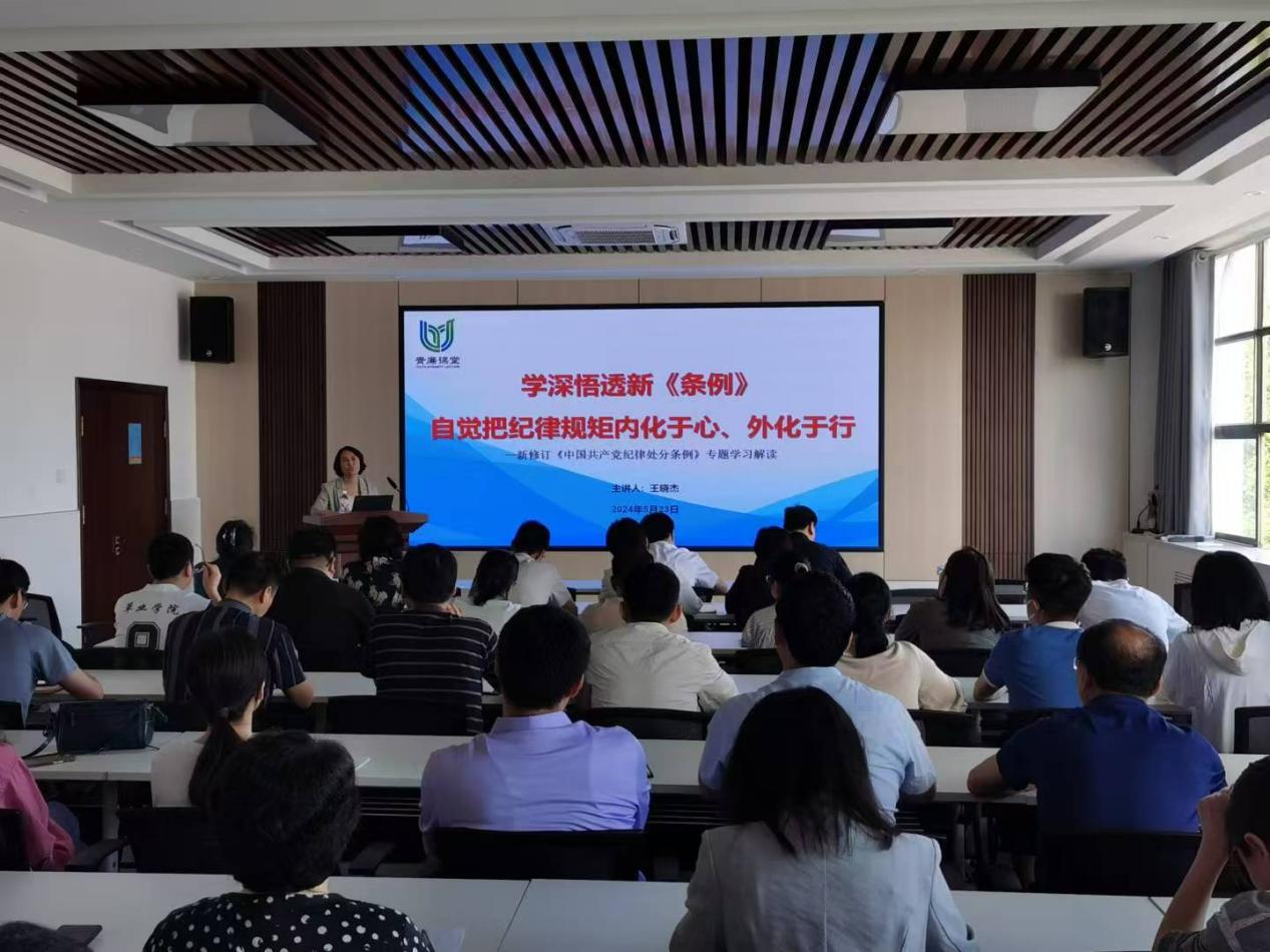 为了推动党纪学习教育扎实有序开展,多措并举筑牢思想防线,5月23日,yzcca88登录官网与草业学院在生物楼C312邀请纪委纪检监察室主任王晓杰作《学深悟透新<条例>,自觉将纪律规矩内化于心、外化于行》专题党课。会议由yzcca88登录官网党委书记孙景福主持。