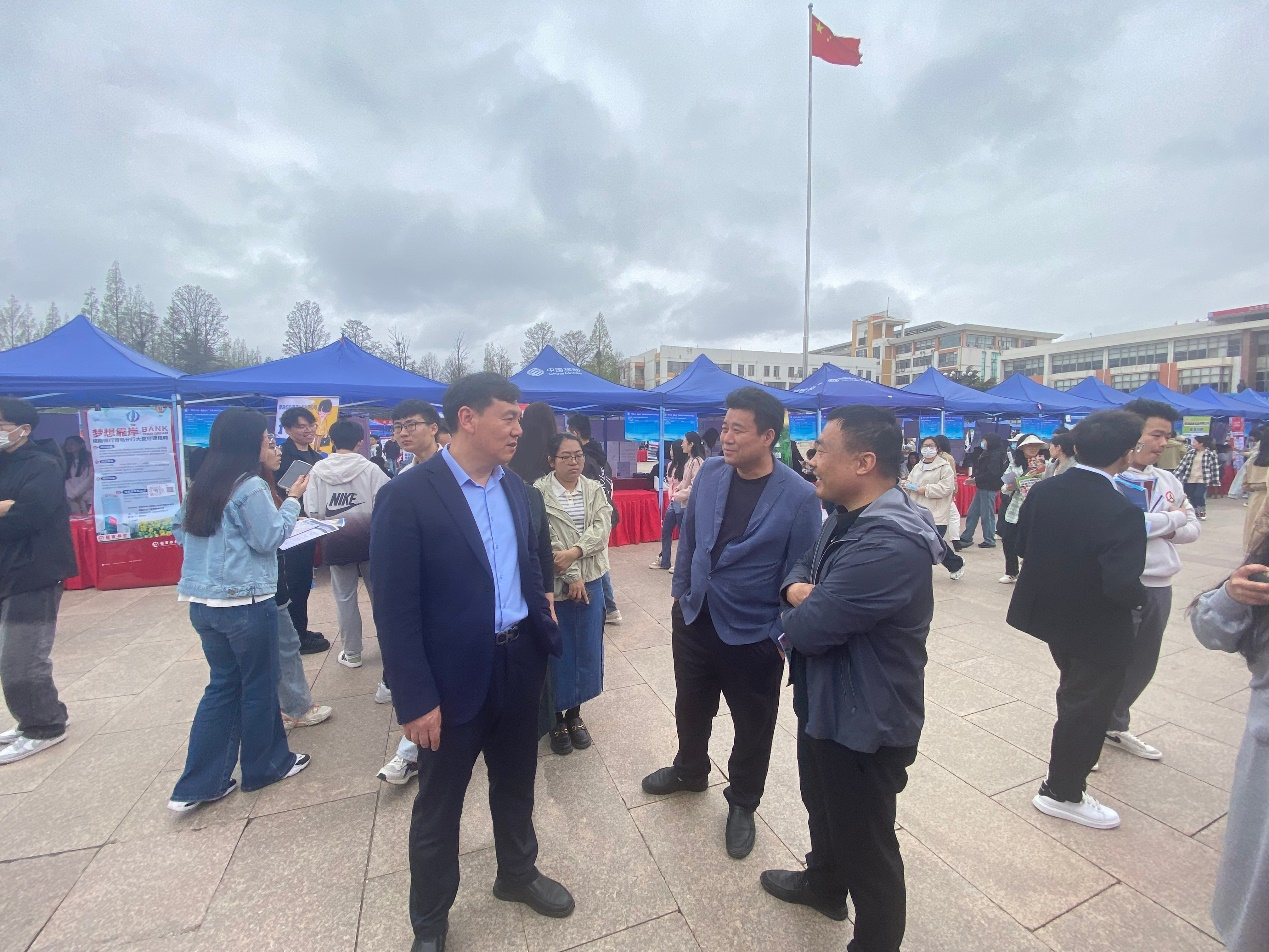 4月13日,山东省高校毕业生集中招聘活动现代高效农业产业专场暨yzcca88登录官网2024届毕业生春季双选会在城阳校区虹子广场举行。yzcca88登录官网党委书记孙景福,党委副书记、副院长刘妍玲,团委书记王洋,全体辅导员老师到双选会现场走访交流。