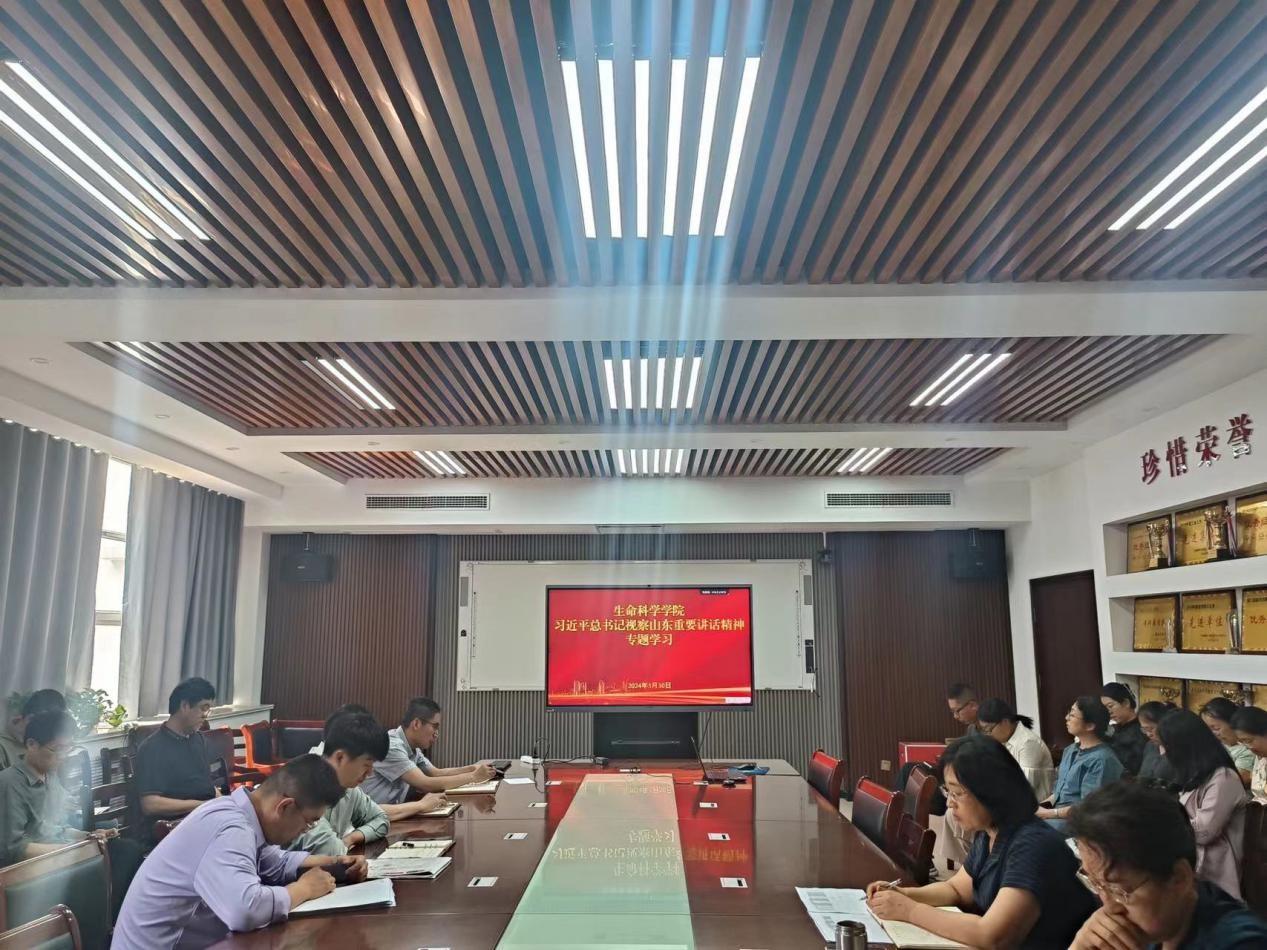 5月30日,yzcca88登录官网在生物楼C305召开学习习近平总书记视察山东重要讲话精神专题会议,学院全体教职工参加会议。会议由学院党委书记孙景福主持。