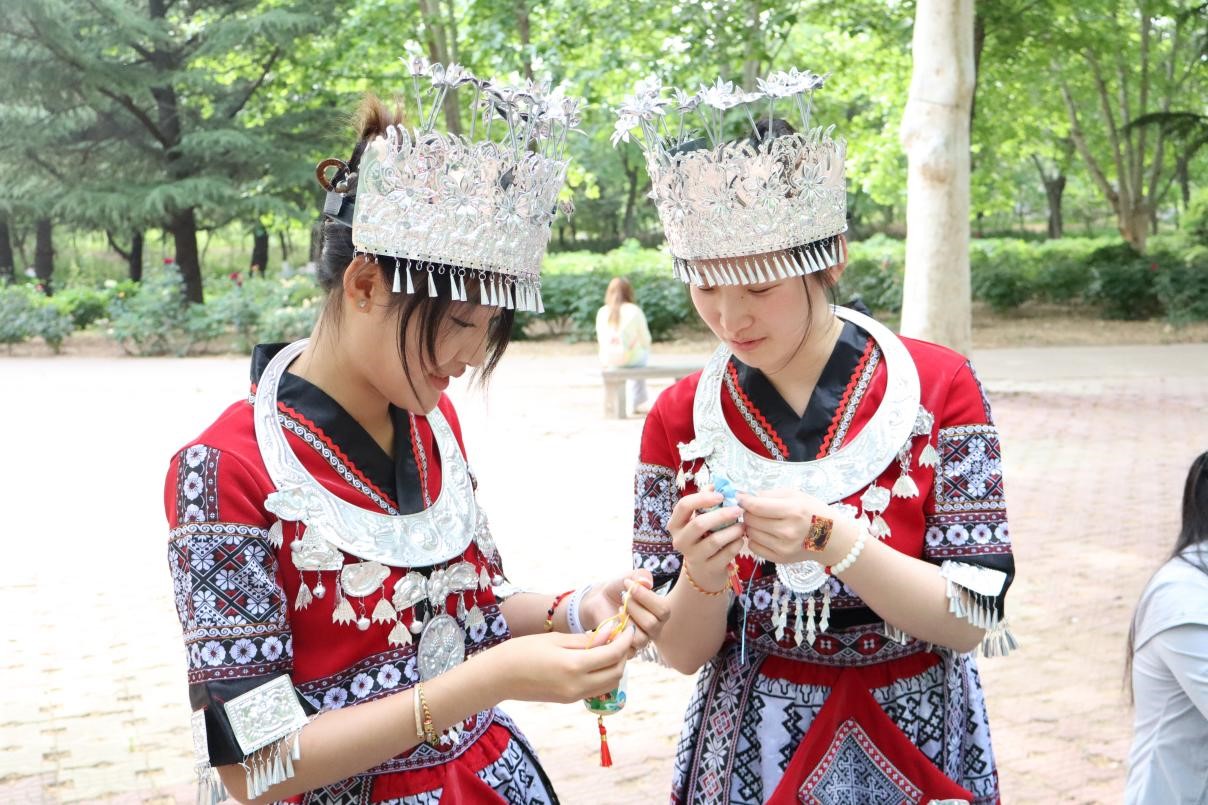 为创新心理健康教育形式,深化学生心理健康意识,增强心理韧性,进一步铸牢中华民族共同体意识,6月5日,由yzcca88登录官网学生工作处主办、yzcca88登录官网承办的同“心”共筑中国梦——中华传统文化与民族特色心理体验活动在城阳校区鼎盛花园圆满举行。来自壮族、彝族、白族、满族、侗族、回族、蒙古族以及布依族等多个民族的学生齐聚一堂,通过沉浸式文化体验,实现文化传承与心理健康教育的双向赋能。