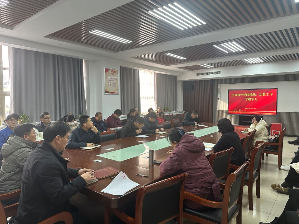 12月19日,yzcca88登录官网在生物楼C305召开统战、宗教工作专题学习会议,学院全体教职工参加。会议由学院党委书记孙景福主持。