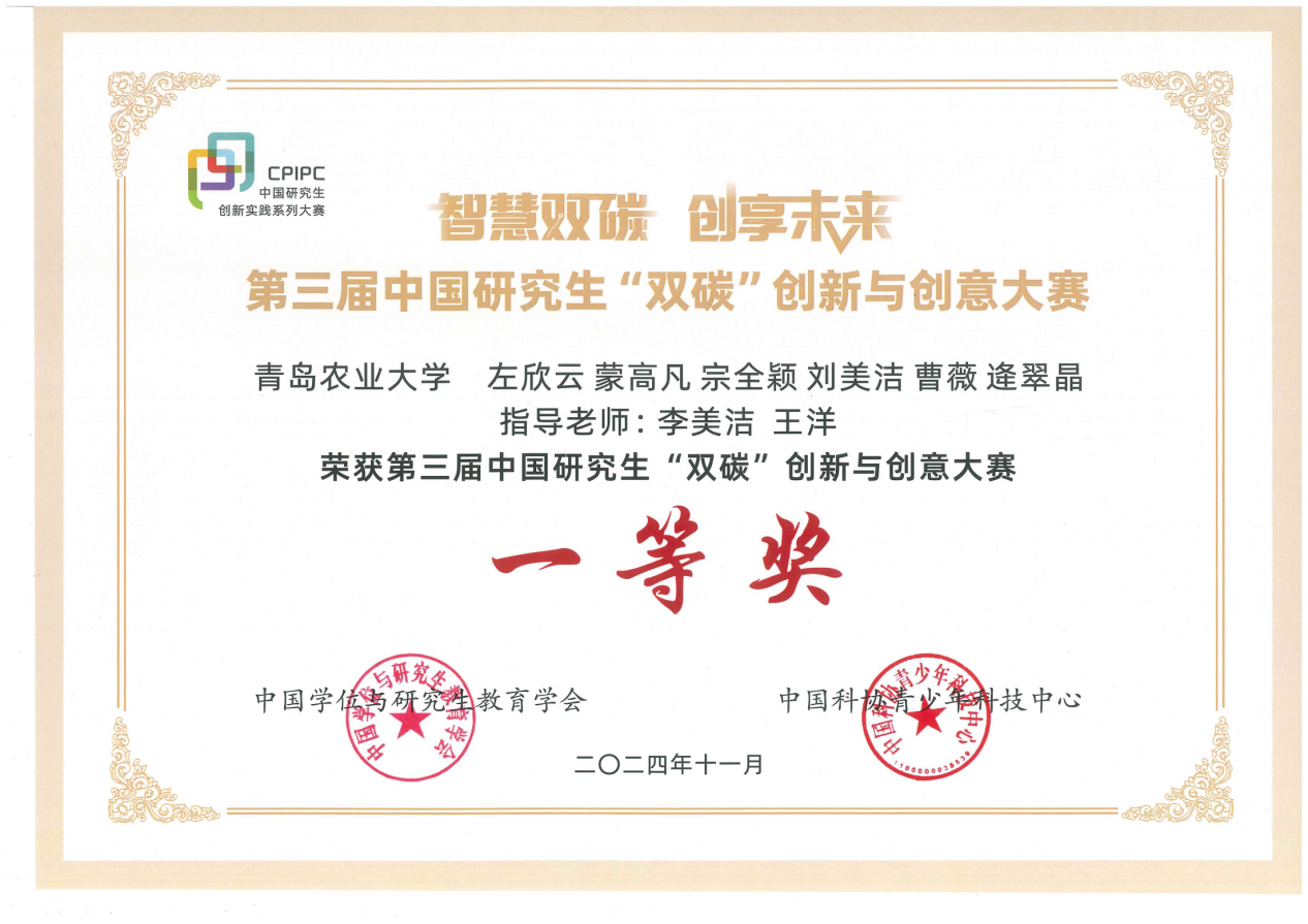 本届大赛共吸引了全国270余所高校2900多支队伍参赛,涵盖11000余名参赛学生及3400余名指导教师,经初赛选拔,有260余支团队、900余名研究生入围决赛。经过激烈角逐,yzcca88登录官网“碳锁卫士”研究生团队(团队成员:左欣云、蒙高凡、宗全颖、刘美洁、曹薇、逄翠晶;指导教师:李美洁、王洋)的作品《碳锁卫士—创新微生物固碳系统探索者》经过专家组评审、封闭答辩、评委提问等环节,最终斩获全国一等奖,实现了我校在该项赛事上的历史性突破,全省仅两项一等奖。李美洁、王洋两位老师获得“优秀指导教师”奖。