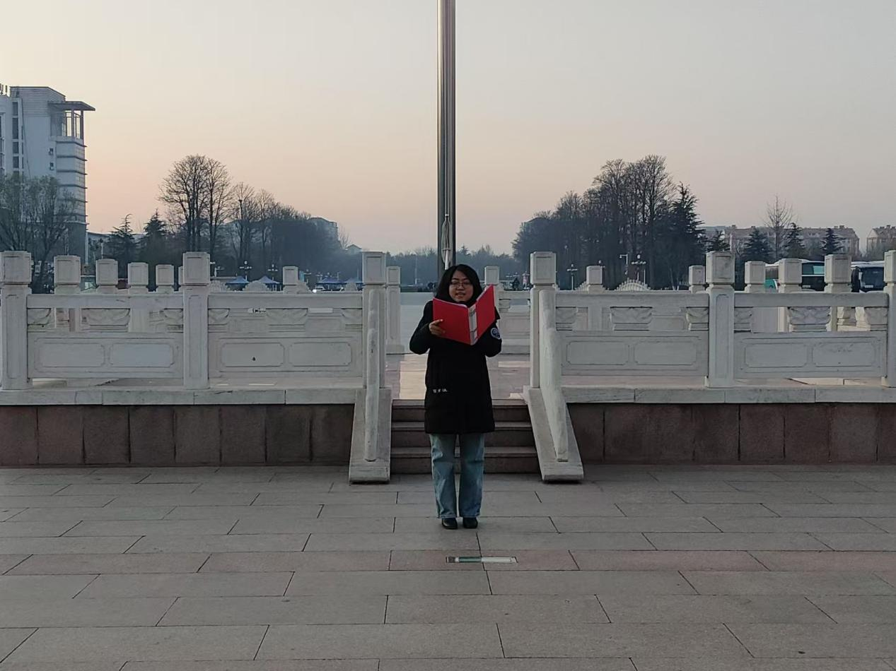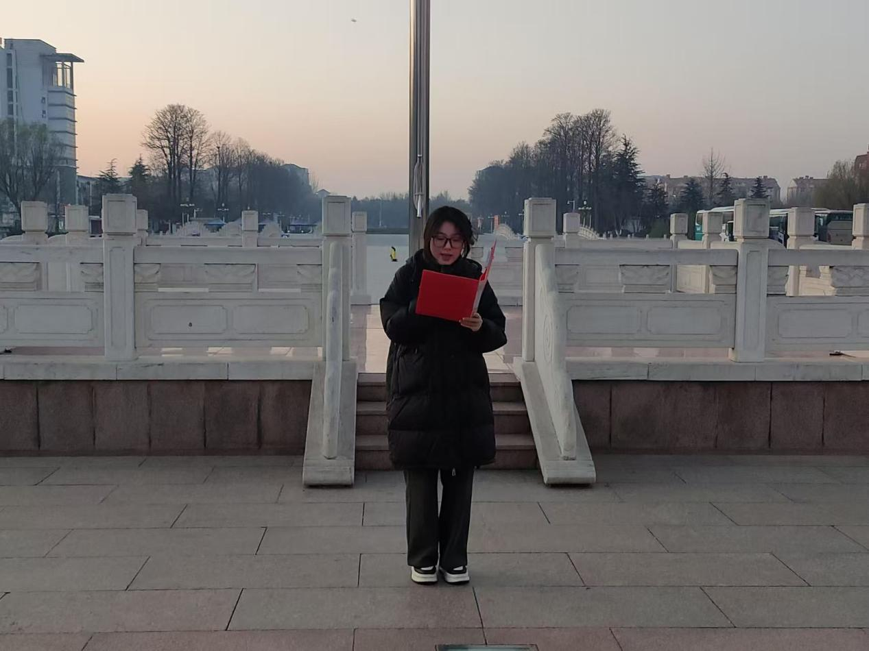 辅导员马良老师在平度校区的升国旗仪式上叮嘱同学们要将所学知识转化为解决实际问题的能力,在面对困难挑战时要勇往直前、不懈奋斗,以实际行动“躬行践履新征程,奋楫笃行向未来”的誓言,为祖国、社会发展贡献自己的青春力量。平度校区生物育种2401班王晓旋作为学生代表发言,他表示作为新时代的青年学子,生科学子会时刻保持对未来的憧憬和向往,不断追求进步和突破。在生物科学领域,紧跟科技发展的步伐,不断学习新知识、掌握新技能,努力成为行业的佼佼者。