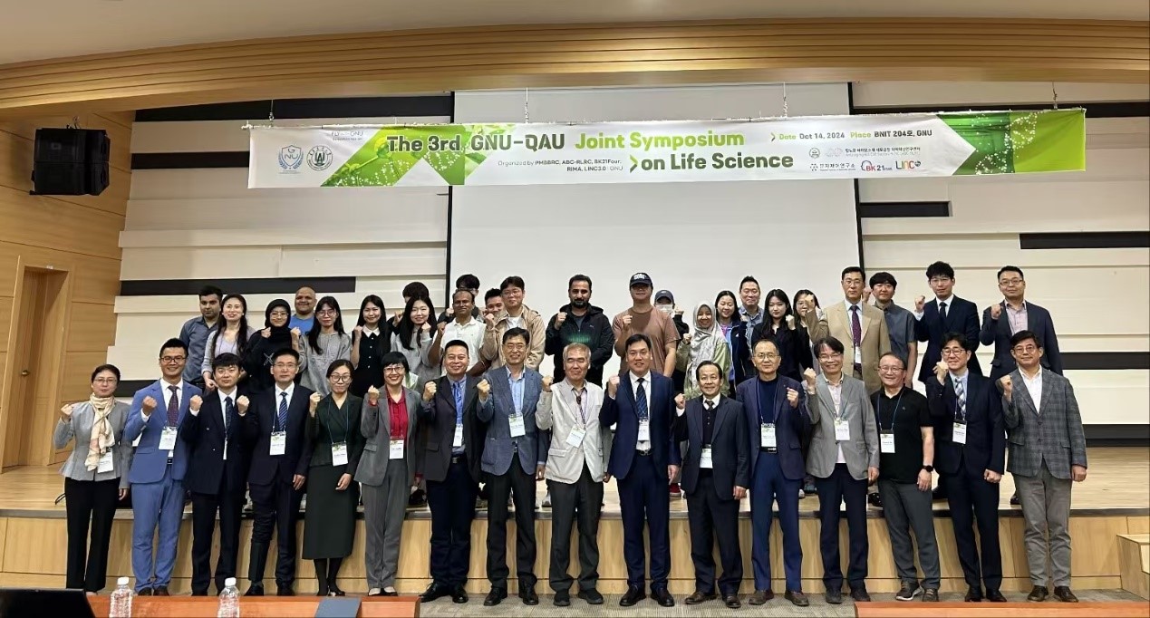 2024年10月14日,第3届yzcca88登录官网-庆尚国立大学生命科学联合研讨会在韩国晋州BNIT研发中心举行。本次研讨会由韩国庆尚大学植物生物技术研究所、BK21 Plus 项目组、分子控制研究所(LAMP 项目)、抗衰老生物材料细胞工厂区域创新研究中心(RLRC)和产学研合作领先大学促进项目组(LINC 3.0)共同承办。yzcca88登录官网党委书记孙景福,杨松、谭玲玲、李帅、赵美爱、王光远、黄娇娇、葛伟参加了研讨会并做交流报告。