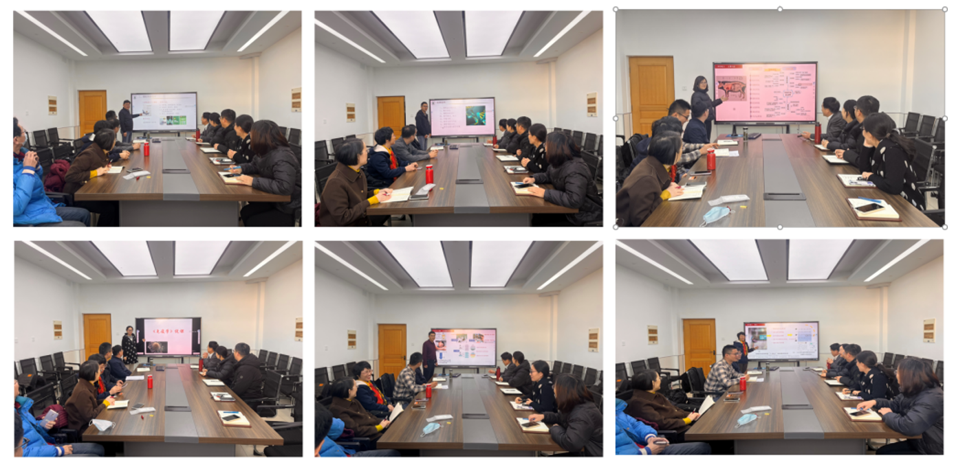 为迎接2024年本科教育教学审核评估,动物学与发育生物学系于2024年1月10日在生物楼C403会议室举办本年度的教师说课活动。本次教师说课活动涵盖了《动物学》《动物生理学》《动物遗传学》以及《免疫学》多门课程,参加说课的老师从课程概况、教学设计思路、教学环境、教学方法、创新与特色、教学评价与效果等方面进行了交流,为教学工作的全面提升奠定了基础。
